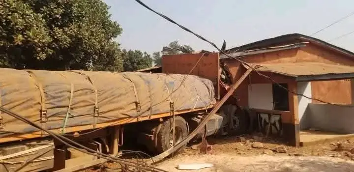 C’est dans la matinée de ce mardi 24 février 2026 qu’a eu lieuce drame. Un camion-remorque immatriculé BB 6763, dont le conducteur aurait perdu le contrôle, a quitté la chaussée avant de terminer sa course dans une concession familiale située en bordure de la route. Au moment de l’impact, plusieurs membres de la famille se trouvaient sur les lieux.