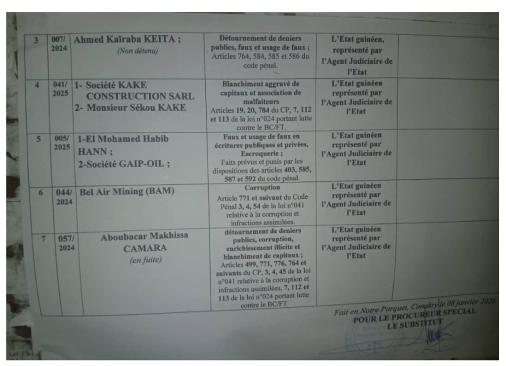 La Cour de Répression des Infractions Économiques et Financières (CRIEF), convoque Aboubacar Makhissa Camara, l’ex directeur Général des impôts, le lundi 12 janvier 2026. Il est poursuivi pour détournement de fonds publics, blanchiment aggravé de capitaux, association de malfaiteurs, faux et usage de faux.