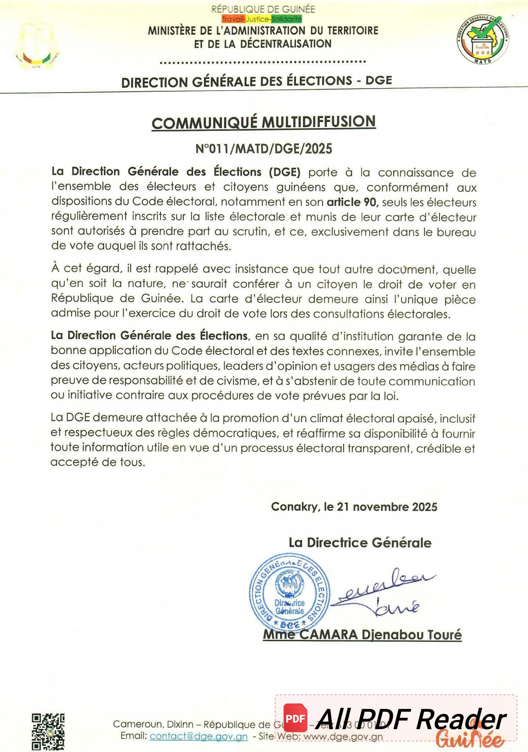 A deux semaines des élections présidentielles prévues le 28 décembre prochain, la direction générale des élections (DGE), à travers un communiqué datant du 21 décembre , à tenu à clarifier sur qui peut voter au jour du scrutin.