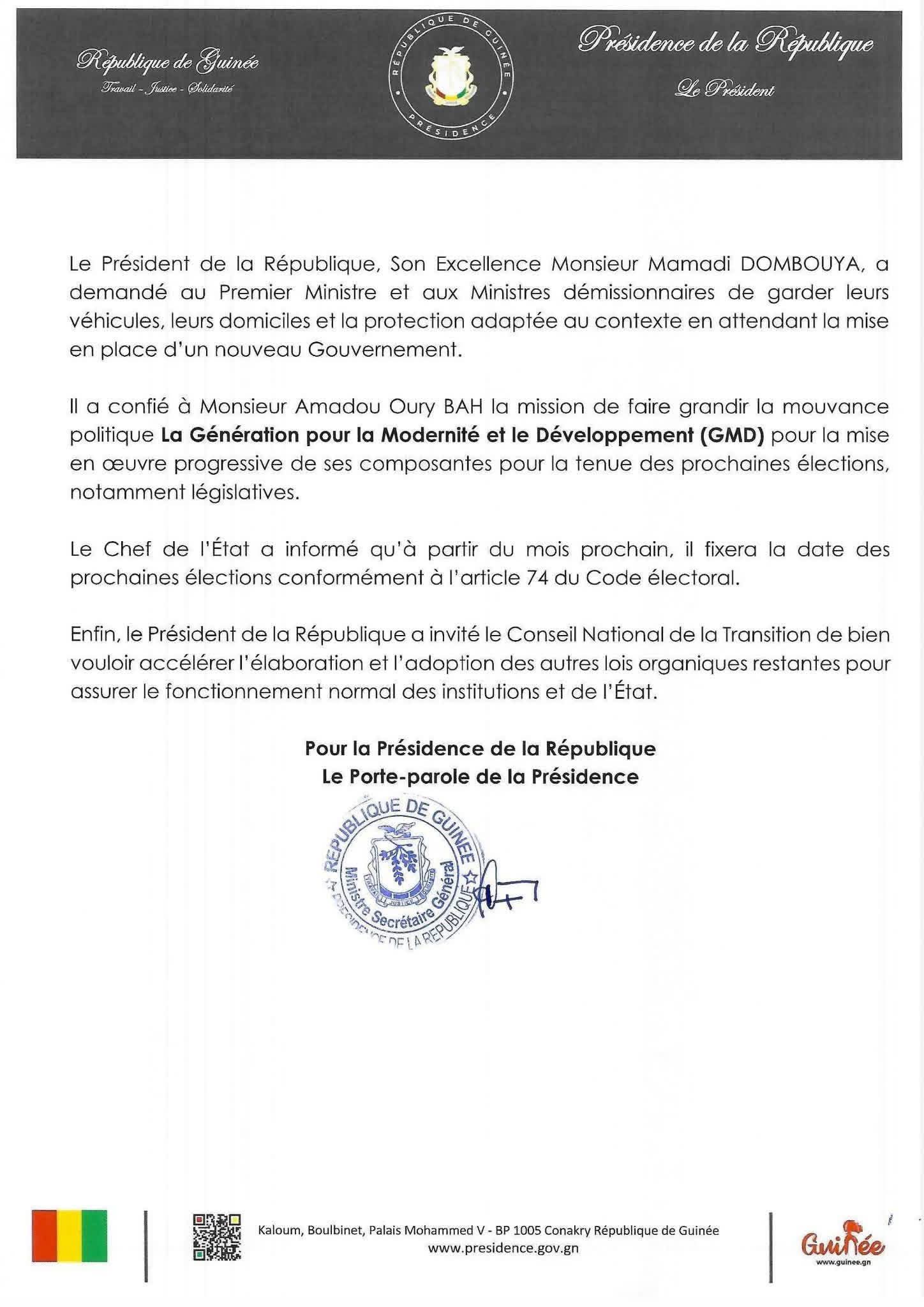 Urgent : le gouvernement de Amadou Oury Bah rend sa lettre de démission au président Mamadi Doumbouya